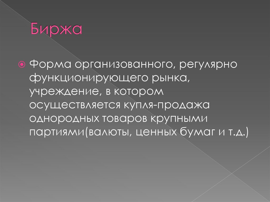 Форма организованного, регулярнофункционирующего рынка,