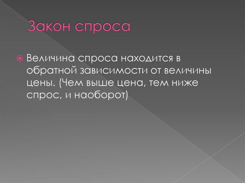 Величина спроса находится вобратной зависимости от величины