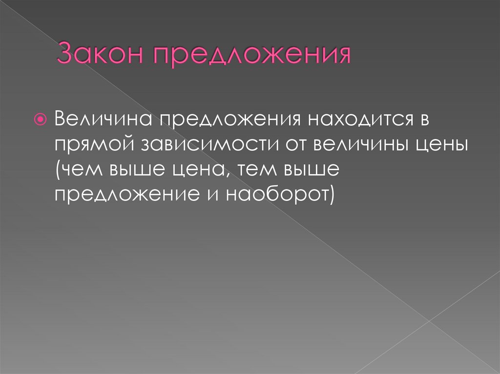 Величина предложения находится впрямой зависимости от величины цены