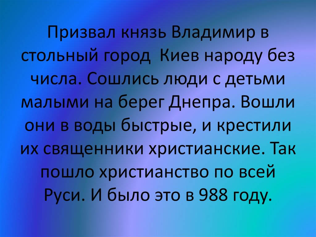 Призвал князь Владимир встольный город Киев народу без