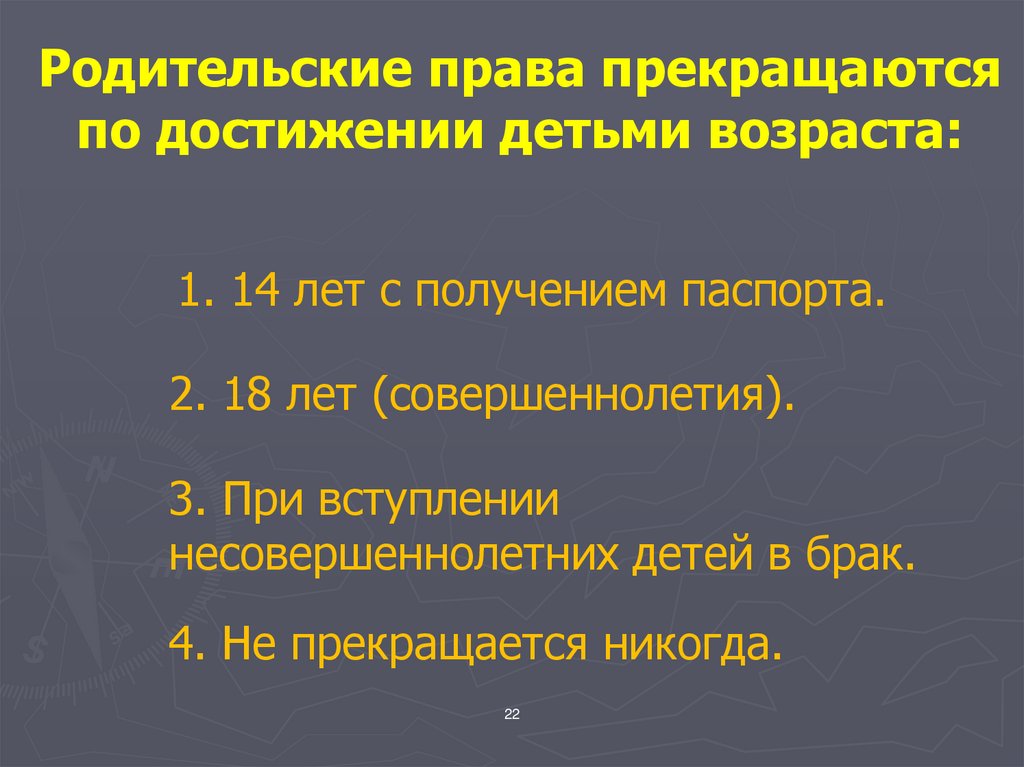 Родительские права прекращаютсяпо достижении детьми возраста:
