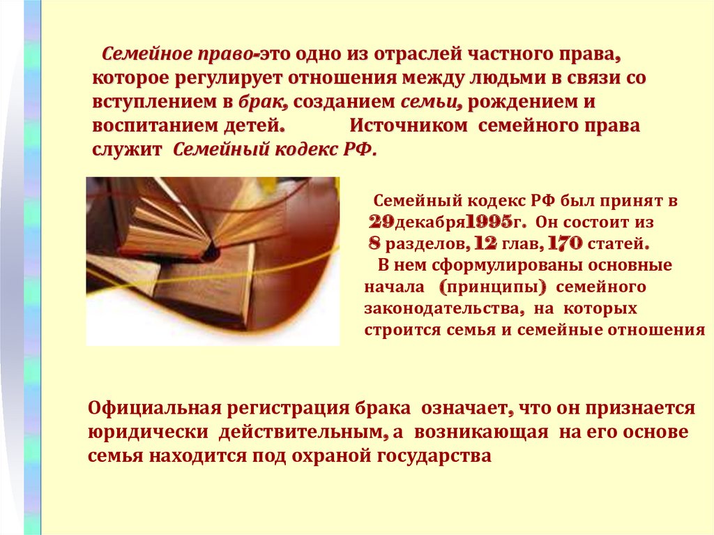 Семейное право-это одно из отраслей частного права,которое регулирует отношения между людьми в связи со