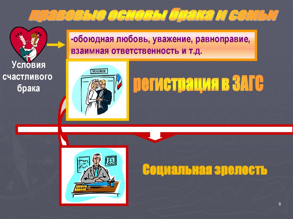-обоюдная любовь, уважение, равноправие,взаимная ответственность и т.д.