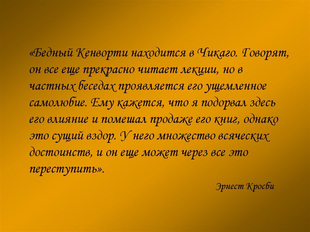 «Бедный Кенворти находится в Чикаго. Говорят,он все еще прекрасно читает лекции, но в