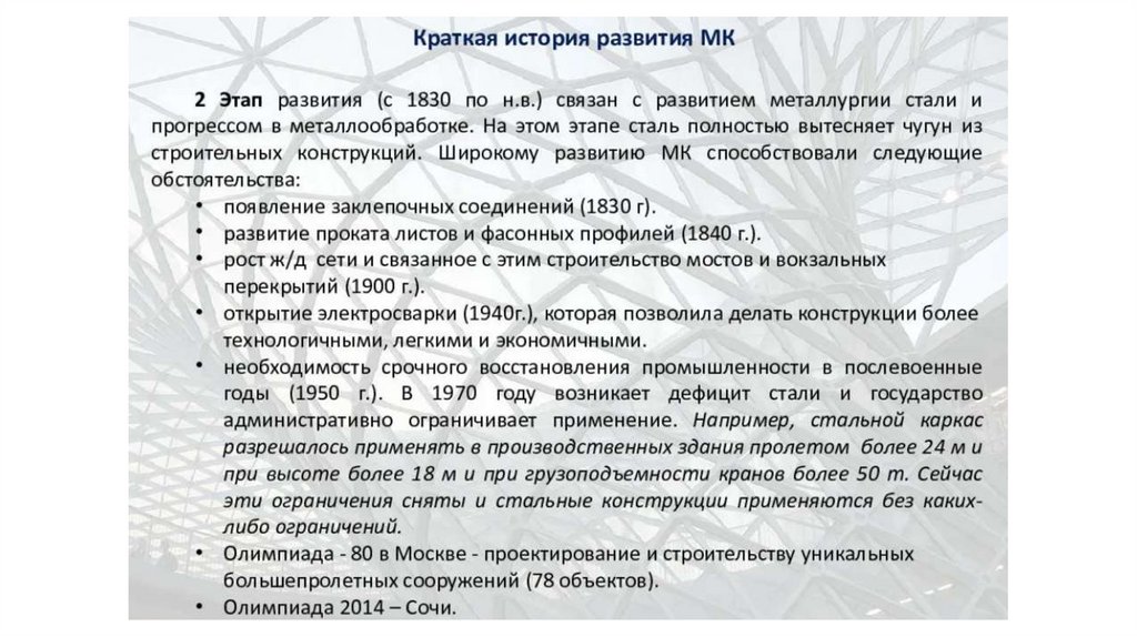 Введение в курс «Металлические конструкций»