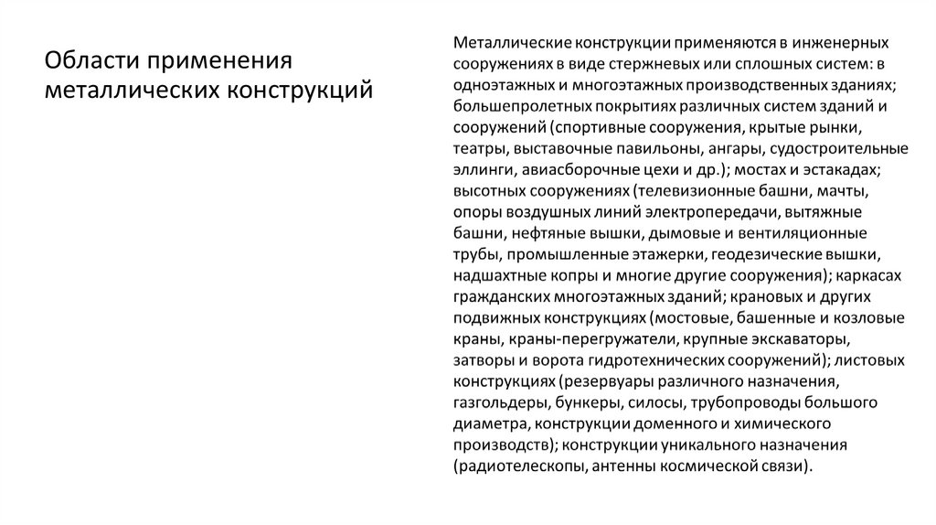 Области примененияметаллических конструкций