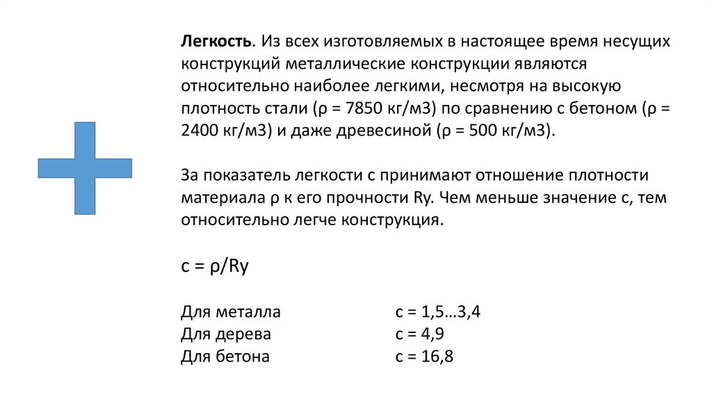 За показатель легкости с принимают отношение плотности