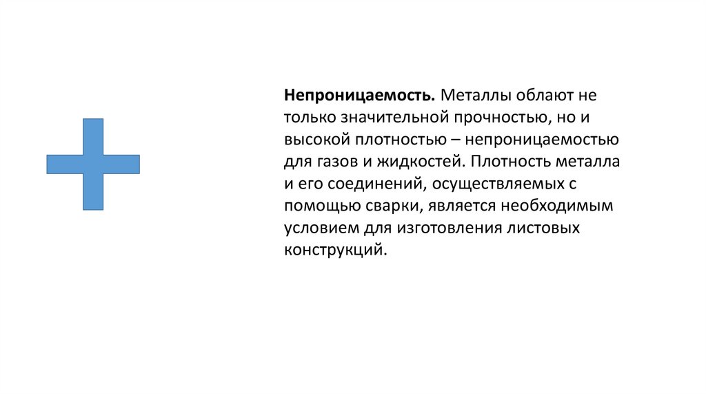 Непроницаемость. Металлы облают нетолько значительной прочностью, но и