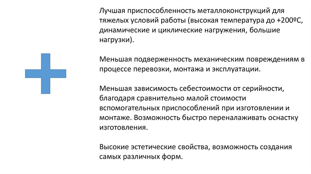 Лучшая приспособленность металлоконструкций длятяжелых условий работы (высокая температура до +200ºС,