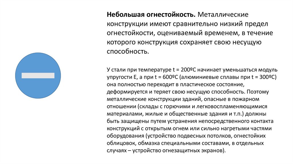 Небольшая огнестойкость. Металлическиеконструкции имеют сравнительно низкий предел