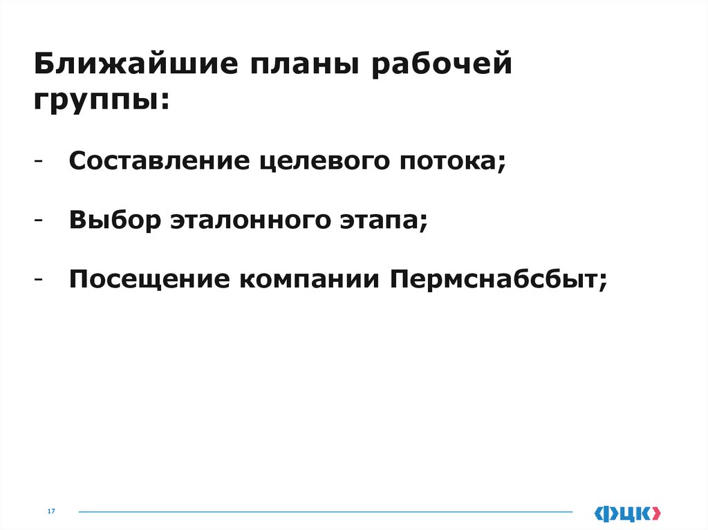 Ближайшие планы рабочейгруппы: