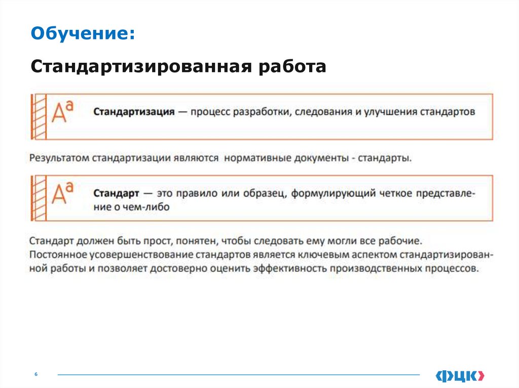 Обучение:Стандартизированная работа