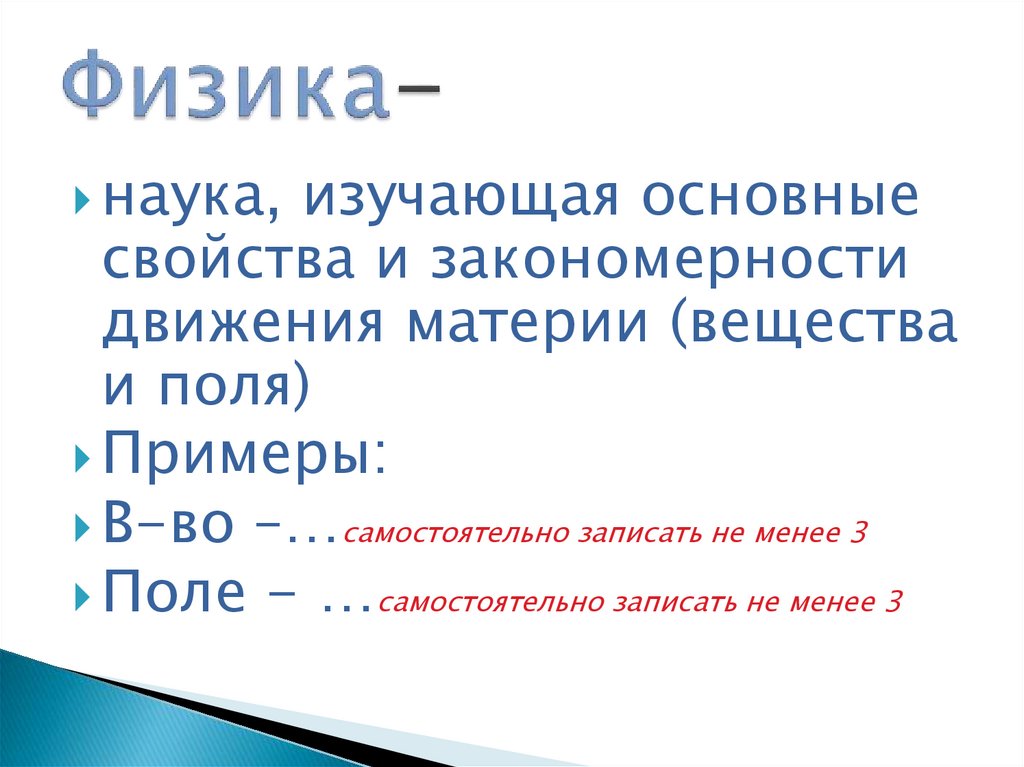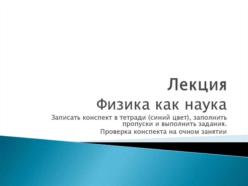 Физика как наукаЗаписать конспект в тетради (синий цвет), заполнить