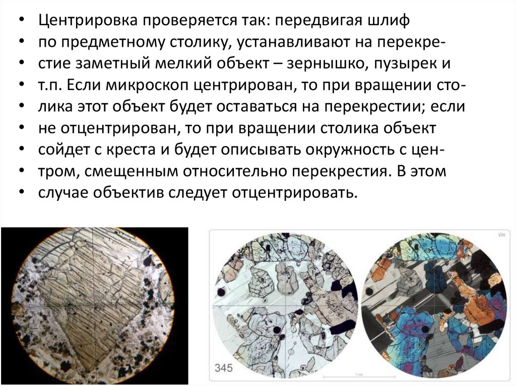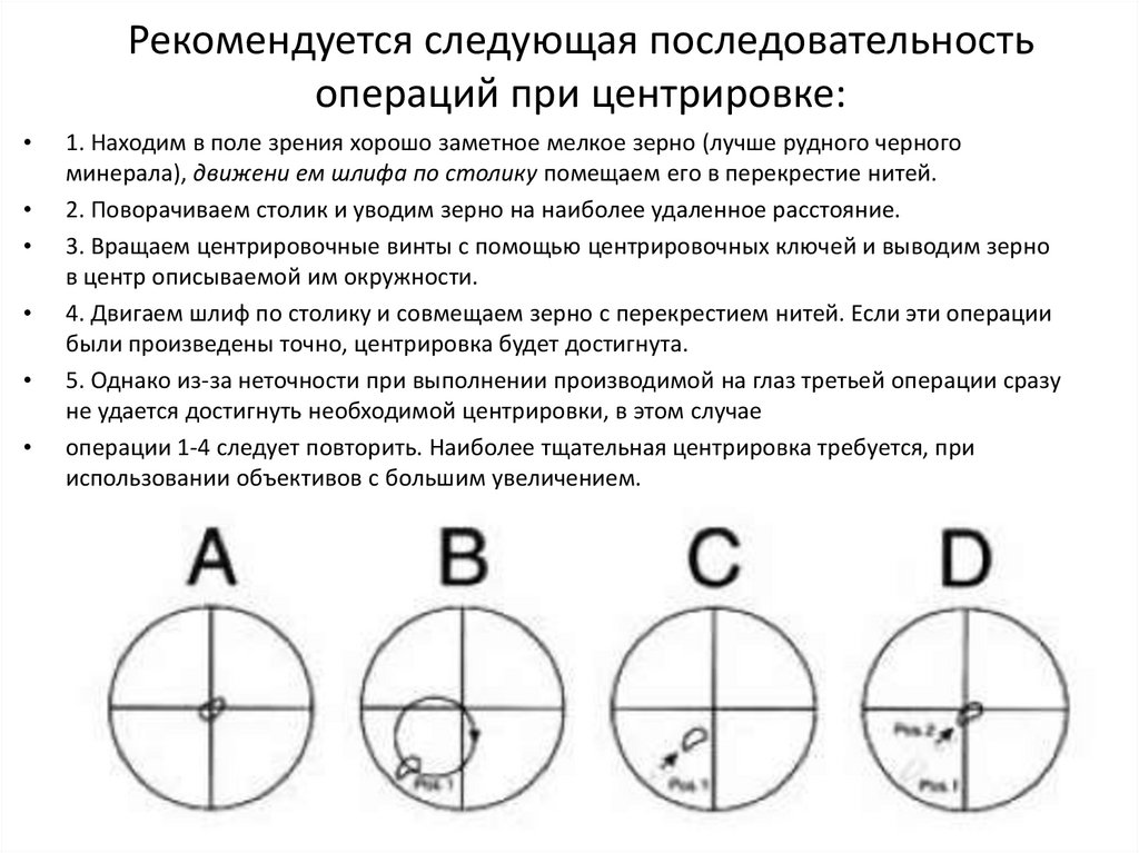 т.п. Если микроскоп центрирован, то при вращении столика этот объект будет оставаться на перекрестии; если