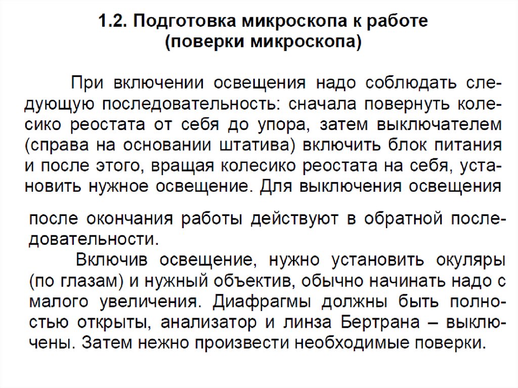 поднять столик так, чтобы объектив почти касался покровного стекла шлифа, а затем, наблюдая в окуляр,