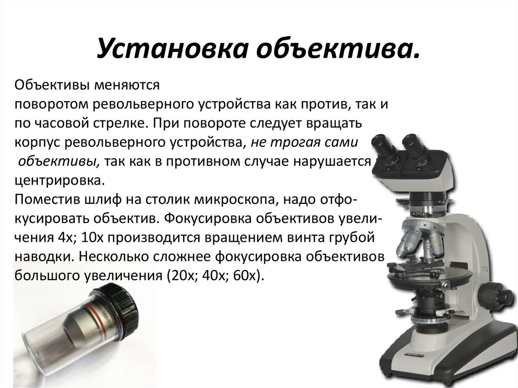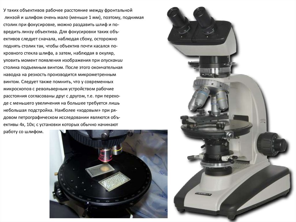 небольшая подстройка. Наиболее «ходовым» при рядовом петрографическом исследовании являются объективы 4х, 10х; с установки которых обычно начинают