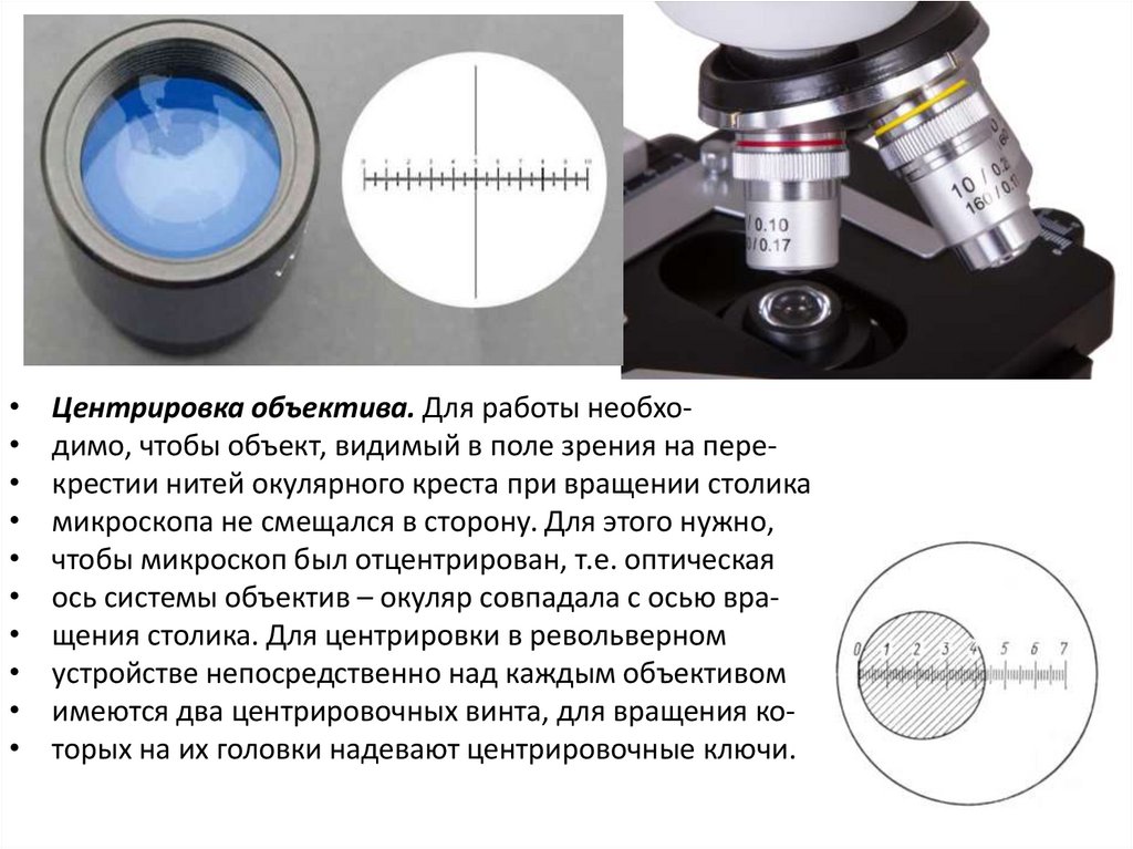 чтобы микроскоп был отцентрирован, т.е. оптическая