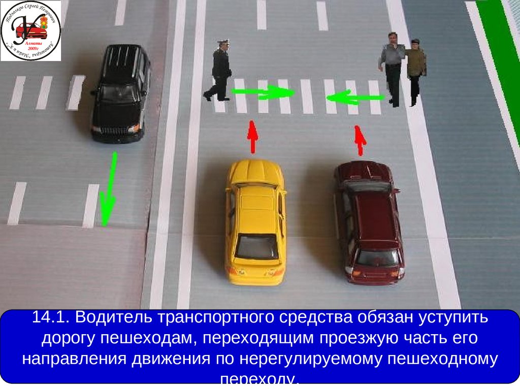 1. Невыполнение требований правил дорожного движения уступить дорогу пешеходам или