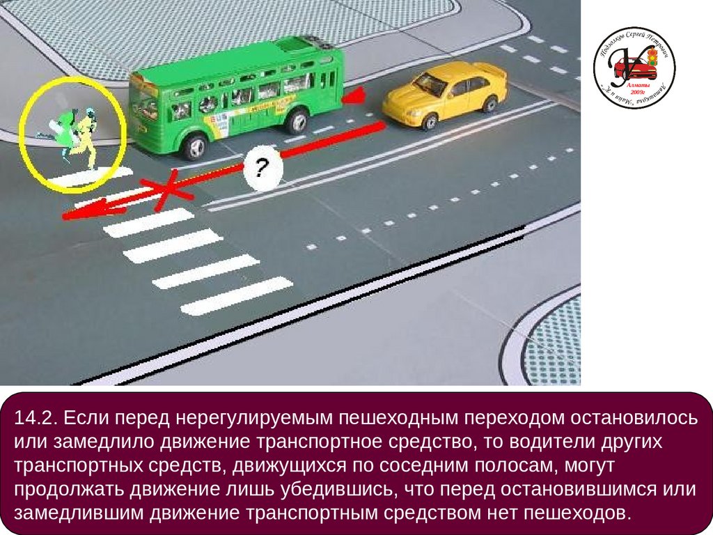 14.2. Если перед нерегулируемым пешеходным переходом остановилось