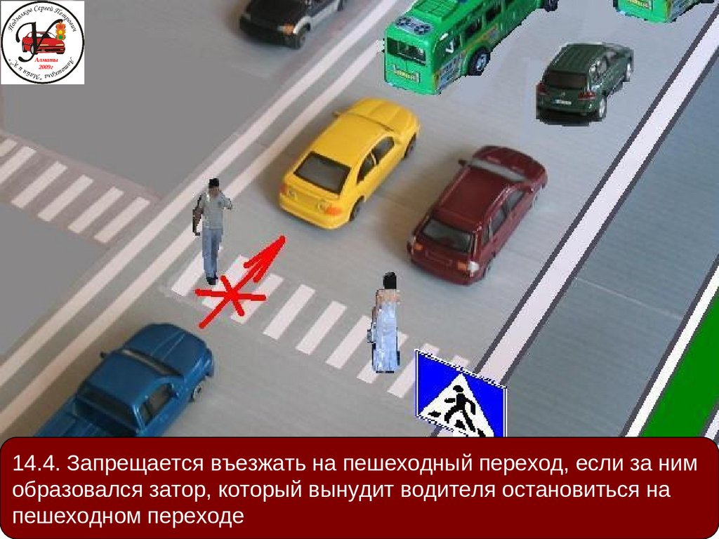 14.4. Запрещается въезжать на пешеходный переход, если за ним