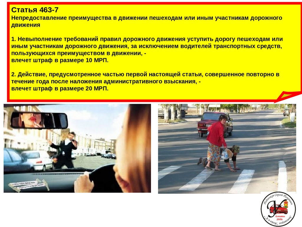 Статья 463-7Непредоставление преимущества в движении пешеходам или иным участникам дорожного