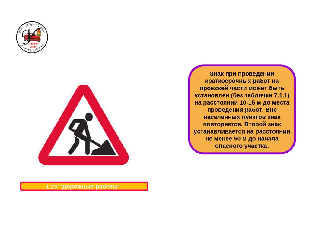 опасного участка. При необходимости знаки могут устанавливаться и на ином расстоянии, которое