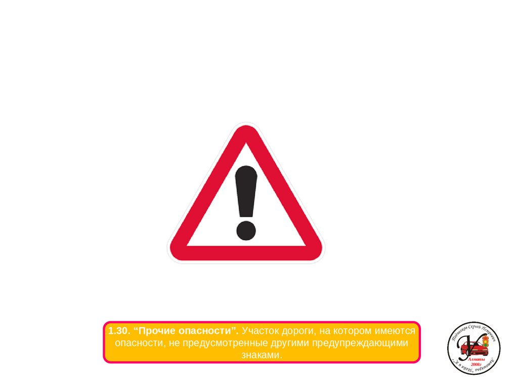 1.30. “Прочие опасности”. Участок дороги, на котором имеютсяопасности, не предусмотренные другими предупреждающими