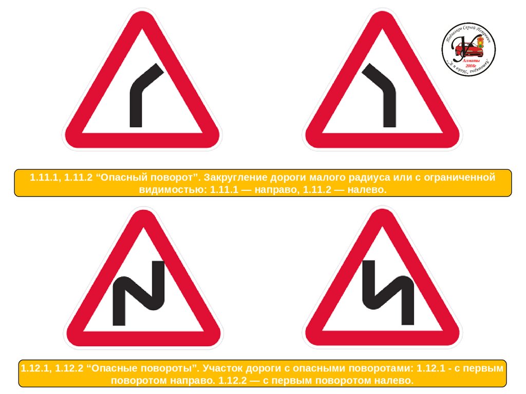 1.12.1, 1.12.2 “Опасные повороты”. Участок дороги с опасными поворотами: 1.12.1 - с первым