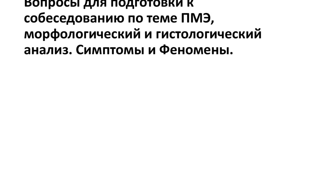 Вопросы для подготовки к собеседованию по теме ПМЭ, морфологический и гистологический анализ. Симптомы и Феномены