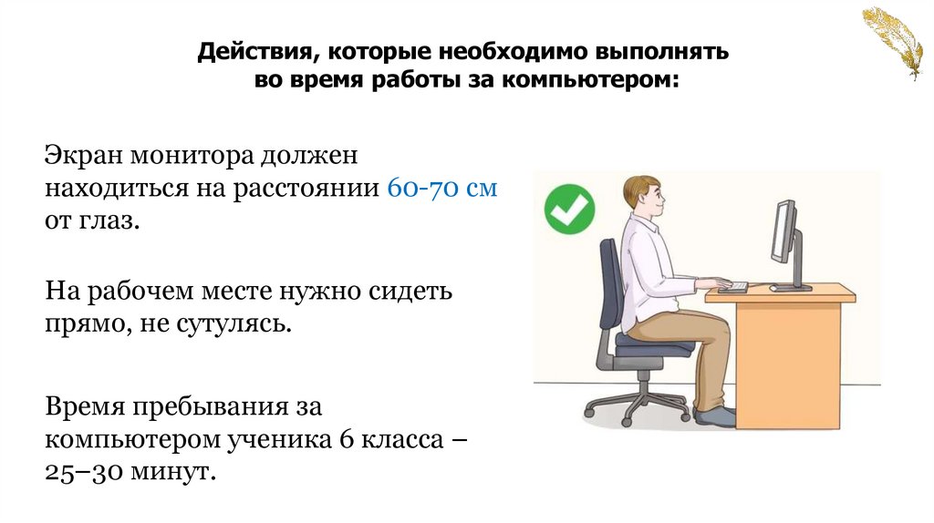 Действия, которые необходимо выполнятьво время работы за компьютером: