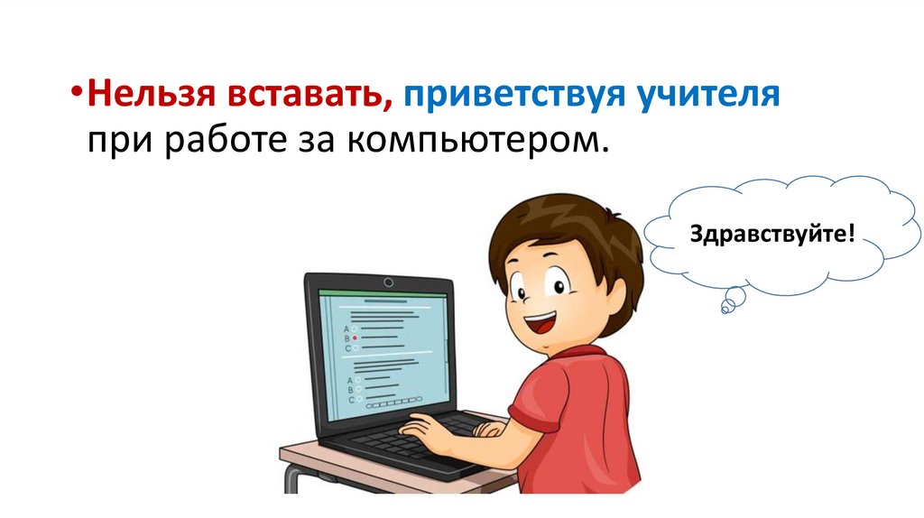 •Нельзя вставать, приветствуя учителяпри работе за компьютером.