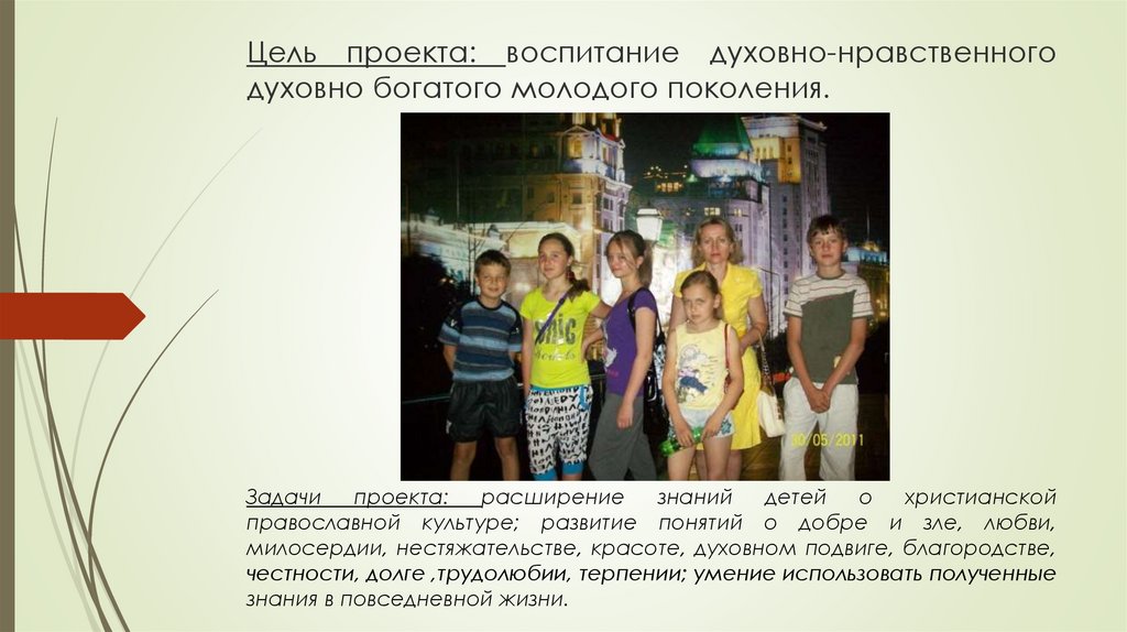 Цель проекта: воспитание духовно-нравственногодуховно богатого молодого поколения.