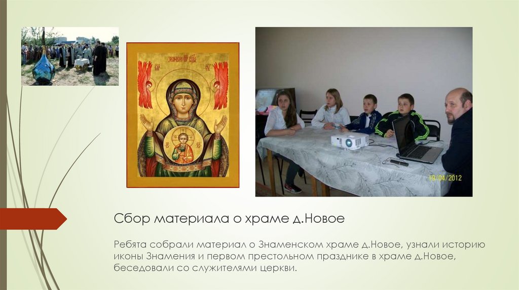 Сбор материала о храме д.НовоеРебята собрали материал о Знаменском храме д.Новое, узнали историю