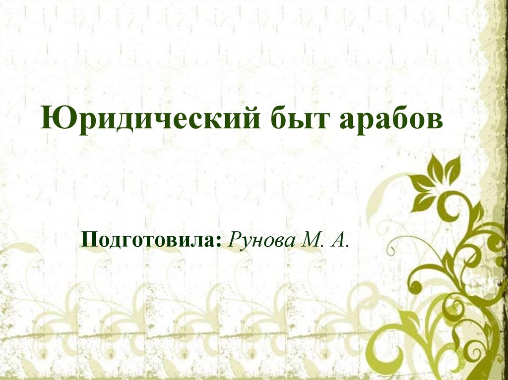 Юридический быт арабовПодготовила: Рунова М. А.