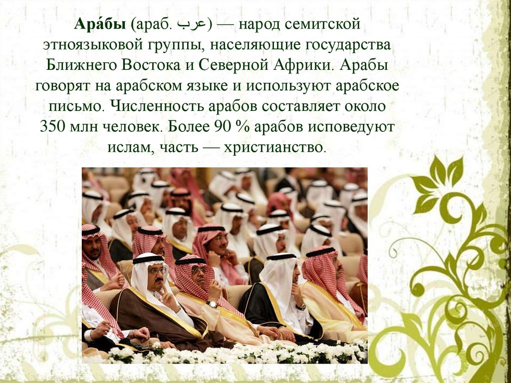 Ближнего Востока и Северной Африки. Арабы