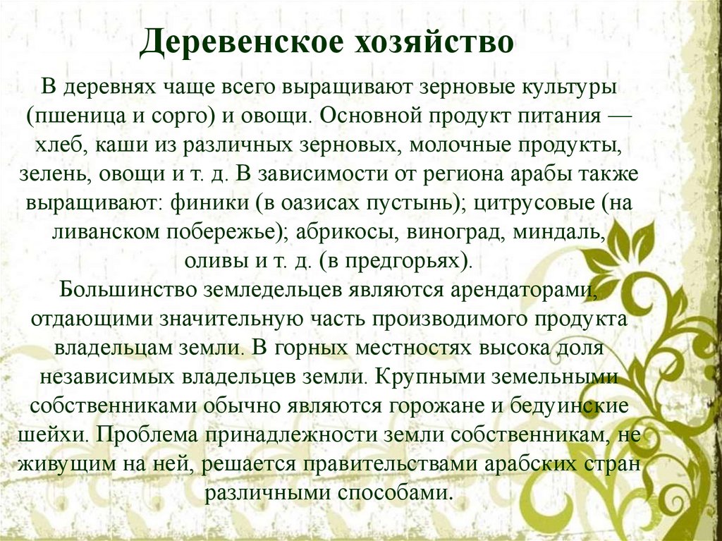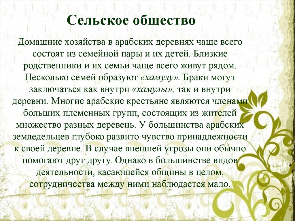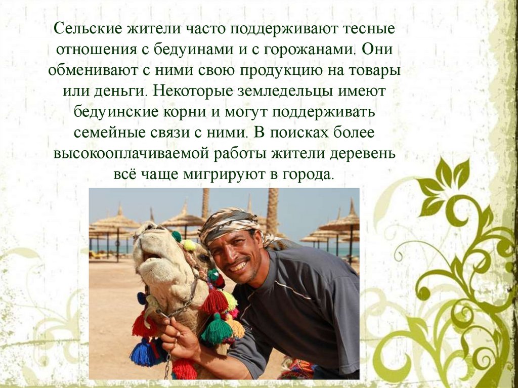 Сельские жителиОколо 70 % арабов живёт в деревнях. Большой проблемой