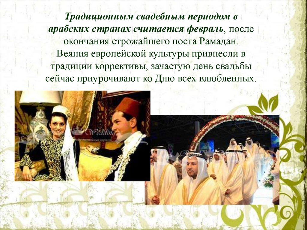 Традиционным свадебным периодом варабских странах считается февраль, после