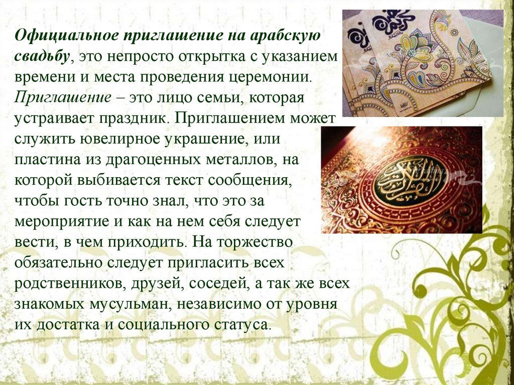 Официальное приглашение на арабскуюсвадьбу, это непросто открытка с указанием