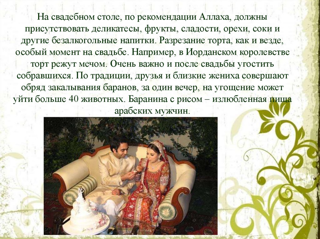 особый момент на свадьбе. Например, в Иорданском королевстве