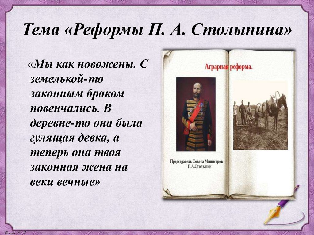 Тема «Реформы П. А. Столыпина»«Мы как новожены. С