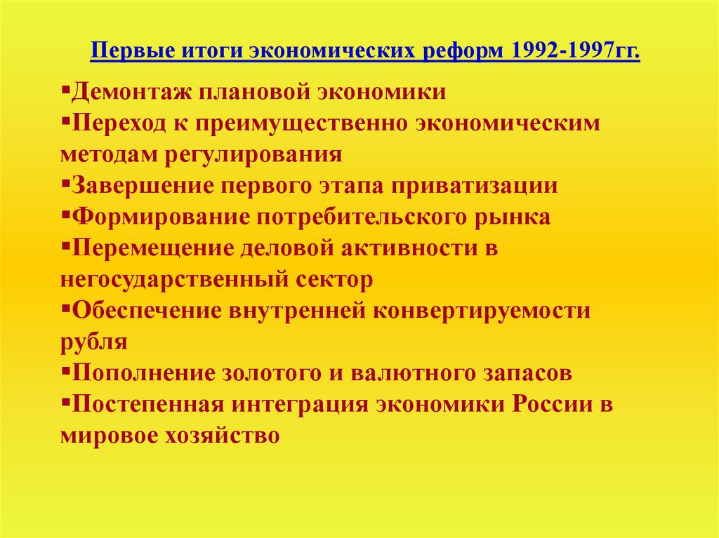 Первые итоги экономических реформ 1992-1997гг.Демонтаж плановой экономики