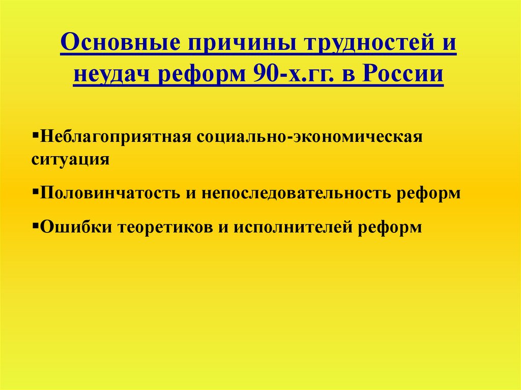 Основные причины трудностей инеудач реформ 90-х.гг. в России