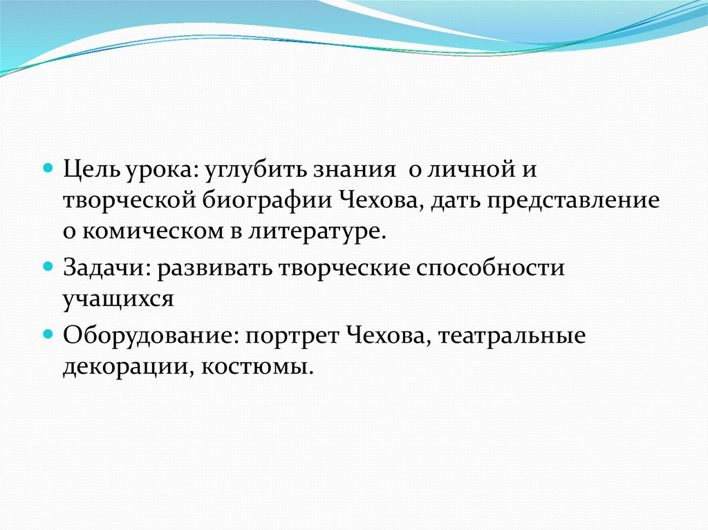 Цель урока: углубить знания о личной итворческой биографии Чехова, дать представление