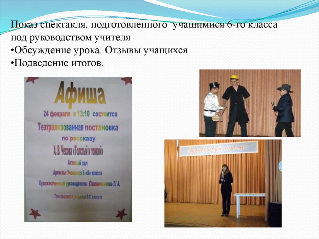А.П. Чехова «Толстый и тонкий». Урок-спектакль в 6 «А» классе