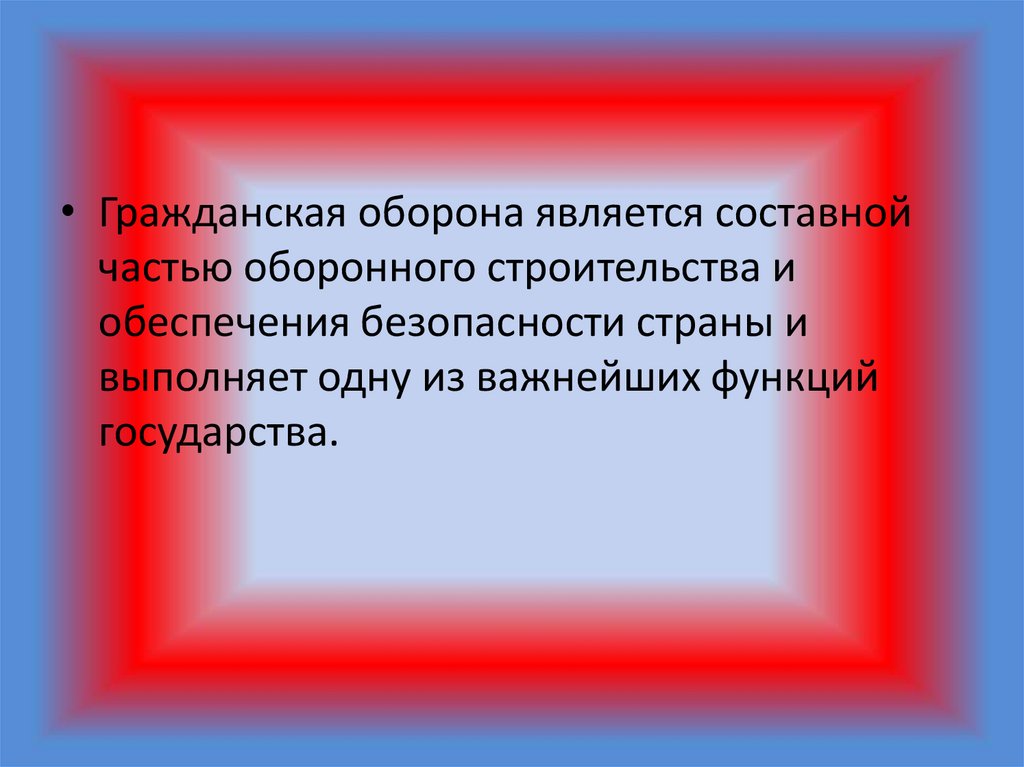 • Гражданская оборона является составнойчастью оборонного строительства и