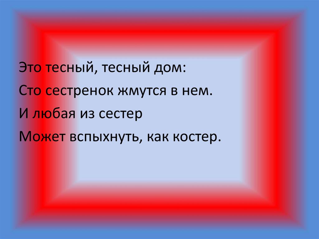 Это тесный, тесный дом:Сто сестренок жмутся в нем.