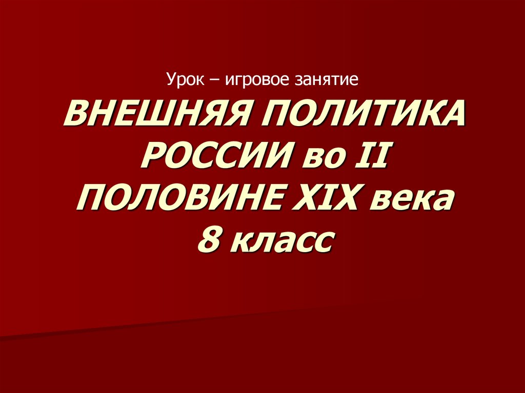 1. ВНЕШНЯЯ ПОЛИТИКА РОССИИ во II ПОЛОВИНЕ XIX века 8 класс