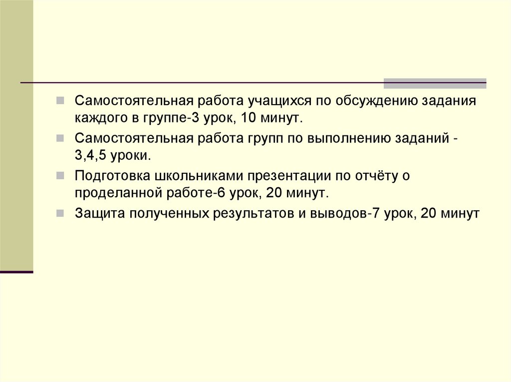 Самостоятельная работа учащихся по обсуждению заданиякаждого в группе-3 урок, 10 минут.