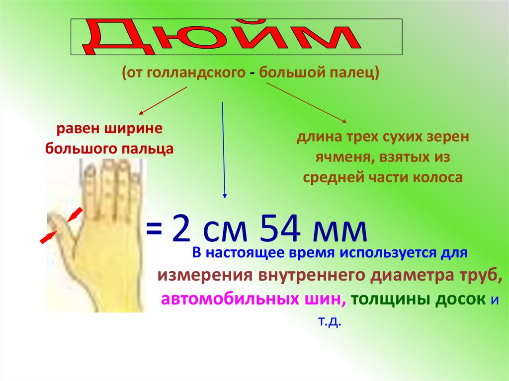 (от голландского - большой палец)равен ширине