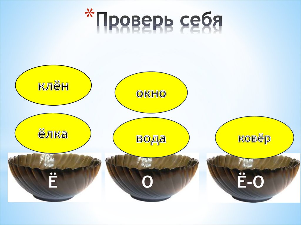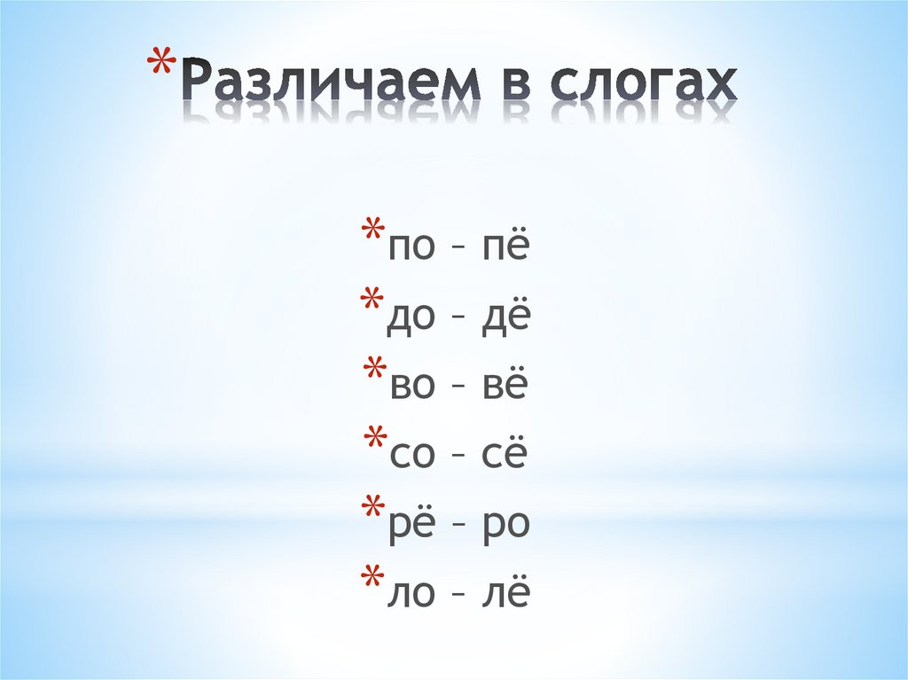 Дифференциация о-ё в слогах, словах, словосочетаниях